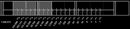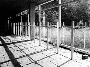 R C B Installation mit 20 Relais und 20 Neons, Länge:16 m Glasgang, Akademie der Künste Berlin. Binärzähler